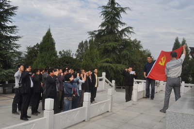 在安康市牛蹄岭,全体党员参观了烈士纪念馆和烈士陵园并认真聆听了讲解。历史上的牛蹄岭战役,有力配合了中国人民解放军主力在大西北战场上的作战和向大西南侧后运动。纪念碑下,全体党员面对党旗,重温入党誓词,并承诺做坚定信念的表率,做学习提高的表率,做好本职工作的表率,做服务群众的表率,做促进和谐的表率,做清正廉洁的表率。