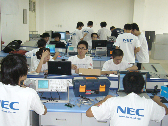 参赛的同学在各自的指导老师的指导下,从暑假开始就进行全国电子设计大赛的培训,培训内容涵盖了模拟电路、数字电路、单片机系统、DSP/FPGA系统、数据通信、电路板设计焊接等多方面内容。指导老师还整合了历年的比赛试题,为同学们配套了相关实战训练,并指导同学们在实验室里紧锣密鼓地进行着测试与完善,与同学们一起感受吃苦的幸福,享受拼搏的过程。