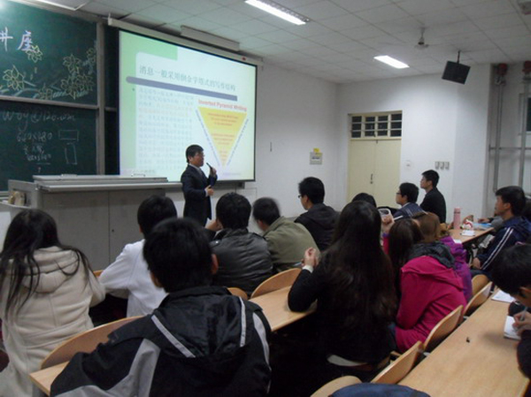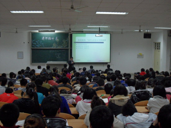 此次讲座是针对各校级、院系以及社团等学生组织宣传委员所做的一次专题讲座,目的是规范校园活动新闻稿的写作形式,提高广大同学的写作技巧与能力,加强各级团学组织以及学生社团开展校园文化活动的宣传意识,促进校园文化活动更好、更全面的发展。