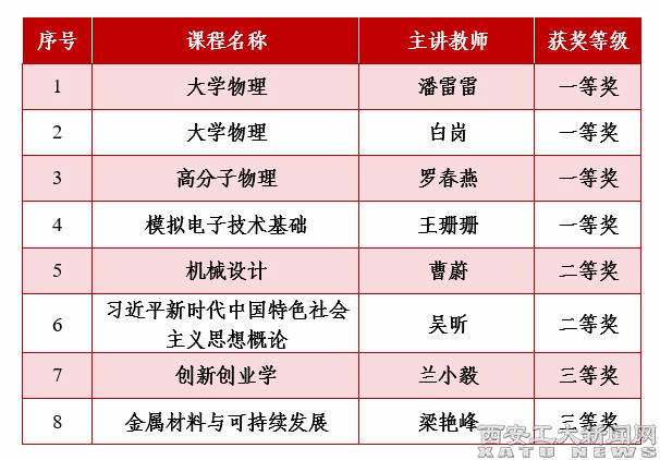 西安工大参加第五届陕西本科高校教师教学创新大赛获奖名单