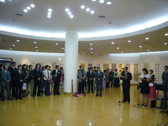 在首尔艺术馆举行的书法展览开幕式上,中韩两国代表团团长发表了热情洋溢的演讲,双方书法家代表现场进行了书艺交流。书法家们精湛的艺术创作赢得了广大观众的高度评价,艺术馆内不时响起阵阵热烈的掌声。韩国多家新闻媒体报道了此次艺术交流的盛况。