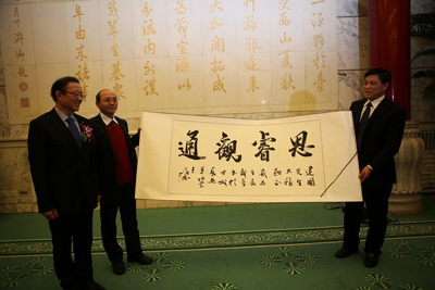 研讨会后,于唯德院长代表企业家思想俱乐部向魏建国、马灿荣等领导赠送了书法作品。