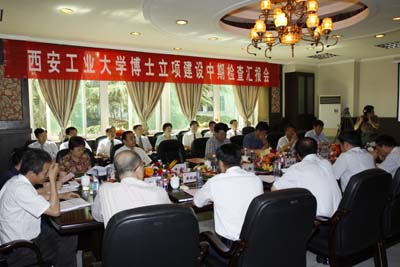 (本网讯)受国务院学位办和陕西省教育厅学位办委托,由郁道银、张荻、梅雪松、潘泉、赵建林、刘新梅等组成的博士立项建设中期检查组于6月24日上午抵达我校;陕西省教育厅厅长杨希文、陕西省学位委员会秘书长、学位办主任孙朝,副主任杨俊利等教育厅领导也莅临我校,参加博士立项建设中期检查工作。