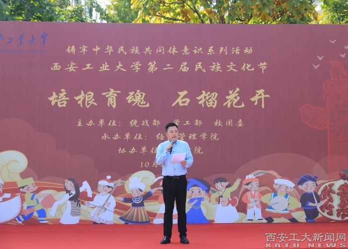 梁云鹤在启动仪式上致辞,对第二届民族文化节的成功举办表示了祝贺,回顾了近年来学校推进铸牢中华民族共同体意识和民族团结进步创建,构建五有育人模式取得的成果。他指出,举办民族文化节,其目的就是对我校民族团结工作成果的一次集中展示,对全校各民族师生进行一次生动的铸牢中华民族共同体意识宣传教育,使民族文化广播校园,民族团结深入人心!