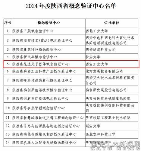 (本网讯)近日,陕西省科技厅公布了2024年度概念验证中心和中试基地认定名单,经过前期推荐申报、专家评审、实地考察、研究审定等环节,最终认定了首批14家陕西省概念验证中心和14家陕西省中试基地,我校“先进光子器件概念验证中心”成功入选概念验证中心建设名单。