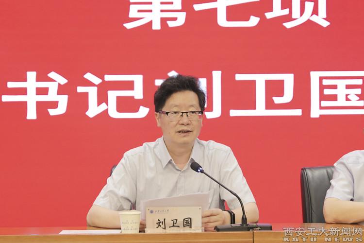 校党委书记刘卫国作了讲话,他首先代表学校党委向全校共产党员致以节日问候,向获得表彰的集体和个人表示热烈的祝贺。他从攻坚克难,“改革牌”越打越好;苦干实干,“发展卷”越画越美;奋勇争先,“荣誉墙”越挂越满等三个方面,对我校一年来各项工作取得的成就进行了简要回顾,充分肯定了全校师生党员坚持以习近平新时代中国特色社会主义思想为指引,砥砺奋进、实干笃行,推动学校高质量发展取得的一系列成果,生动诠释了“忠诚进取铸辉煌、精工博艺育英才”的西工精神。他要求全校各级党组织要把学习贯彻习近平总书记来陕重要讲话与开展主题教育结合起来,从强化基层党建对学院活力提升的引领、践行为师生办实事办好事的根本宗旨、激发开拓进取推进高质量发展的不竭动力等三个方面,狠抓责任落实、工作落实、任务落实,确保学校党委的工作部署落地生根、见行见效。