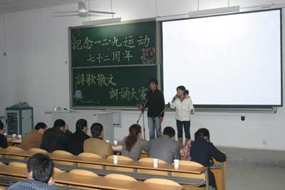 (本网讯)12月6日,【官网入口】星空体育登录页面,一键快速登录团委举办“纪念一二九运动七十二周年”诗歌散文朗诵比赛。