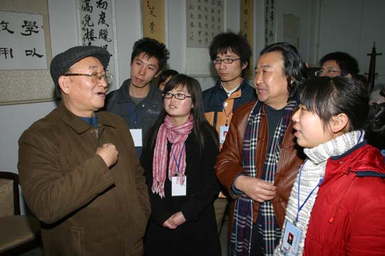 活动中,雷珍民主席、张山副主席为北信学院欣然题词并热情地对学生的作品进行点评指导。