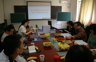 史教授从“感恩、珍惜、铭记、余热、魅力、信息和感悟”七个方面谈了自己从教几十年对教学方法和人生的感悟,对年青教师有很好的启发作用。谢立仁就教学中要注意的一些问题做了说明,作为明星教师的年青教师张晓棠总结了自己的教学心得,与会人员就自己的教学体会进行了讨论。