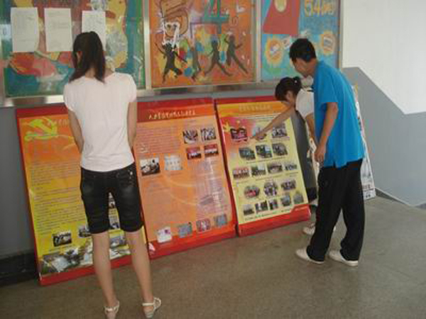 (本网讯)为庆祝中国共产党成立89周年,进一步开展好党员教育活动,提高党组织的凝聚力和战斗力,经济管理学院党委于6月21日在教A楼前开展了为期一周的“支部风采展”活动。