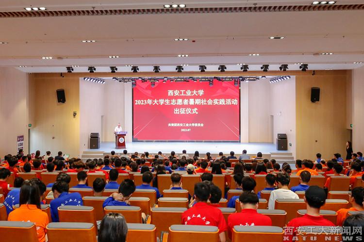 (本网讯)7月6日,我校2023年大学生志愿者暑期科技文化卫生“三下乡”社会实践活动出征仪式在双创楼报告厅举行。