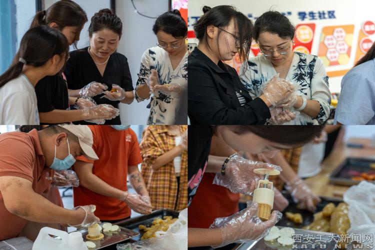 活动分为月饼制作、传统竹杯垫制作和学生座谈三个环节。活动开始后,同学们在烹饪教师带领下,揉面、包馅、压模,分工合作制作出口味丰富的月饼。在传统竹垫制作中,同学们灵巧地使用工具精心地对竹子进行切割、打磨,一个个刻着“中秋团圆”的精美手工艺品呈现在众人眼前。