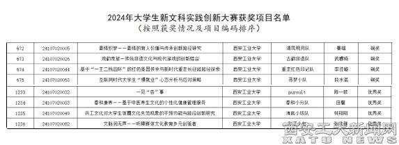 (本网讯)近日,首届大学生新文科实践创新大赛全国总决赛于山东济南落下帷幕。经过激烈角逐,我校本科生共有8项作品获得国家级奖项,其中“秦绣织梦——秦绣的育人价值与传承创新路径研究”“戏韵奇旅—传统非遗文化与现代游戏的创新结合”“基于‘一主二线四环’的红色基因传承与新时代重走长征路路径探索”和“互联网时代大学生‘慢就业’心态分析与应对策略”4项荣获铜奖;“一见‘杏’事”“春和康养——基于中医养生文化的个性化健康管理服务”“兵工文化对大学生饭圈文化失范现象的干预功能与路径创新研究”和“文脉润无声——听障群体文化教育多元创驱者”4项荣获优秀奖。