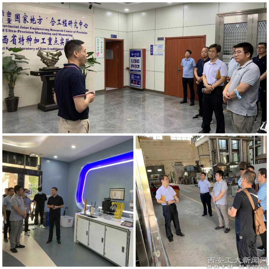 在兵器科学与技术学院院长郭永春的陪同下,黄海波一行先后参观了智能创新工厂、国家地方联合工程研究中心轻合金精密成型中试基地、陕西省特种加工重点实验室。