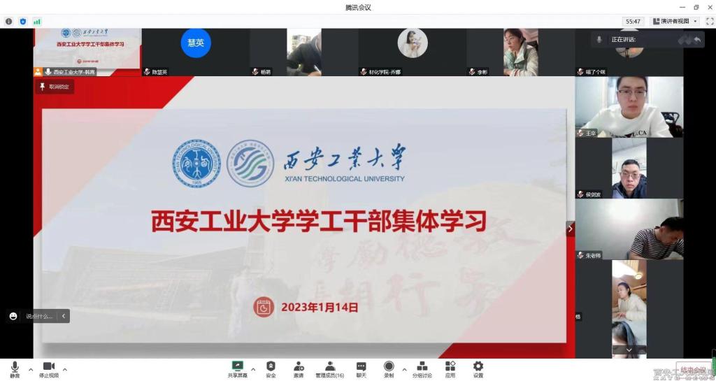 1月12日,学工部发布《关于在寒假期间开展学工干部政治理论学习的通知》,要求各学院学工干部在寒假期间以《2022年辅导员政治理论学习资料汇编》《中国共产党简史》为主要内容定期开展个人自学和线上交流。