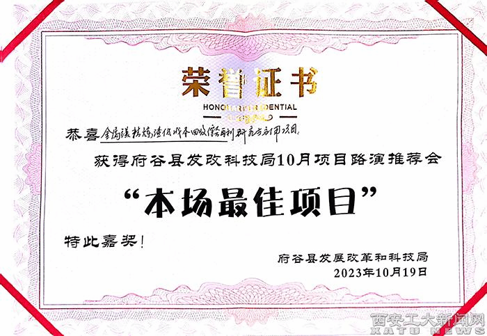 本次项目路演推介会吸引了来自政府、企业、投资机构等各界代表的参与。会上,多个领域的优秀项目进行了精彩的推介。项目涵盖了农业、旅游、科技创新等多个领域,其中包括《纯净镁液冶炼制取技术和工艺》、《新型智能燃烧器》、《CVD法石墨烯技术产业化发展及融资规划》和材化学院杨忠教授,扈琳副教授联合府谷县旭丽机电技术有限公司申报的《金属镁精炼渣低成本回收综合再利用研究与示范应用》项目。学院申报的项目引起了与会嘉宾的广泛关注和认可。该项目不仅能够实现对金属镁精炼渣的有效回收,减少环境污染,还能将其转化为可再利用的资源,为企业创造经济效益,具有广泛的应用前景,可以在金属冶炼、建筑材料等领域发挥重要作用。经过评委质询答辩环节,《金属镁精炼渣低成本回收综合再利用研究与示范应用》项目荣获“本场最佳项目”奖项。
