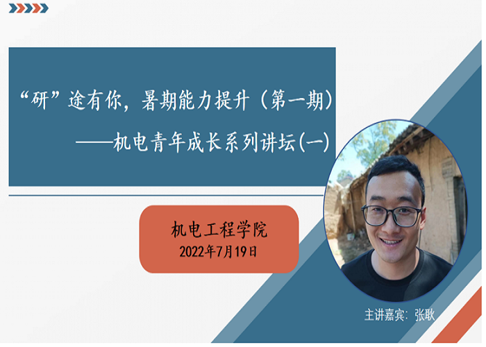 (本网讯)为帮助机电学子正确认识专业前景,进一步明确奋斗目标、职业规划和前进方向,以积极主动的心态面对大学学习生活,机电学院在暑假之初开展“机电青年成长系列讲坛”,邀请机电优秀青年教师,为学生分享大学成长奋斗经历,考研、考博经历,职业生涯规划以及对本专业职业前景认识,为同学们答疑解惑。