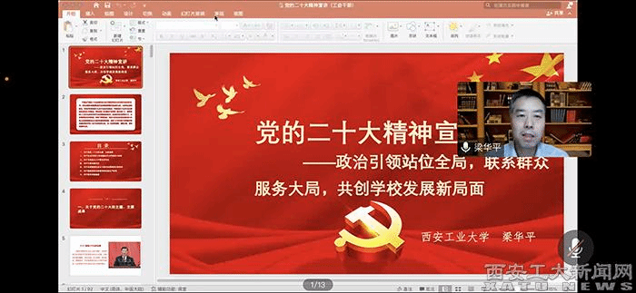 (本网讯)为深入贯彻学习党的二十大精神,营造浓厚学习氛围,提升工会干部履职能力。12月15日,校工会邀请党的二十大精神陕西省委马院院长宣讲团成员、我校马克思主义学院副院长梁华平,为全校工会干部进行了党的二十大精神专题培训。全校100余名工会干部参加。