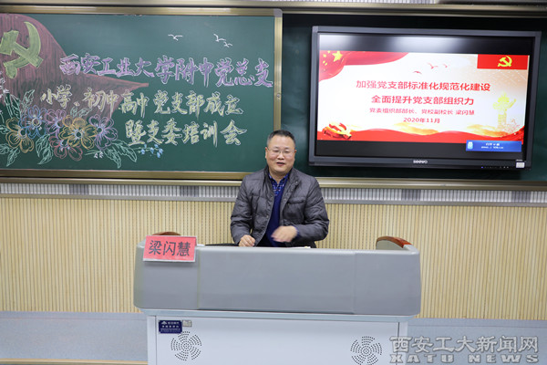 会议的第二阶段是邀请大学党委组织部常务副部长、党校副校长梁闪慧就“加强党支部标准化规范化建设,全面提升党支部组织力”做专题培训。