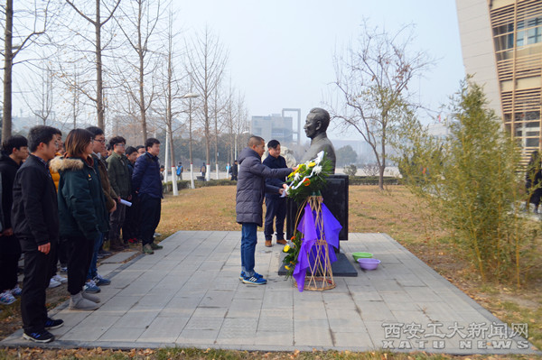 学院师生认真打扫吴运铎塑像,并举行向吴运铎塑像敬献花篮等系列活动。