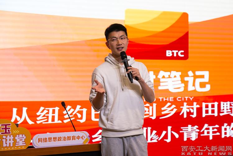 会上,汪星宇以《从纽约巴黎到乡村田野——一个返乡创业小青年的故事》为题,围绕读懂农村、服务农村、建设农村三个方面,结合自身奋斗故事为全体学生展开讲述。