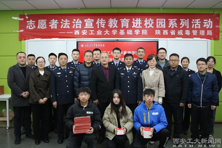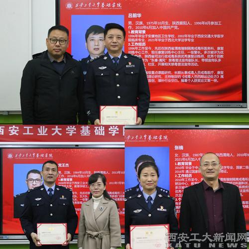 (本网讯)为进一步加强校园法治建设,提升大学生法治素养,12月5日,基础学院与陕西省戒毒管理局联合举行校外法治辅导员聘任仪式暨志愿者法治宣传教育进校园系列活动。本次活动以“大力弘扬宪法精神,推动进一步全面深化改革”为主题,积极面向大学生开展宪法宣传系列活动。陕西省戒毒管理局二级高级警长史鹏、大队长党王杰、二级警长李力,陕西省渭南强制隔离戒毒所康复训练中心主任吕前华、教育矫治科副科长张楠、一级警员刘战勇、阮航、任航,陕西省长安强制隔离戒毒所四级警长陈俞戈如约来到我校开展活动。活动由基础学院党委副书记张艳霞主持。