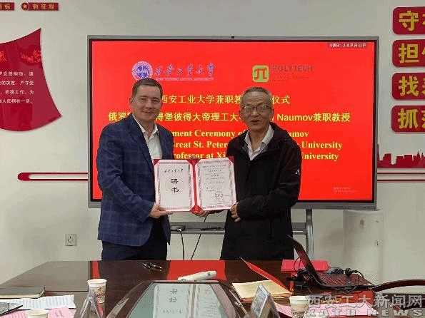 在现场热烈的掌声中,聘任仪式圆满结束。通过本次兼职教授聘任仪式,材料与化工学院将进一步加强与俄罗斯圣彼得堡彼得大帝理工大学合作,共同探索显示技术领域的新动向,为产业发展和人才培养作出贡献。