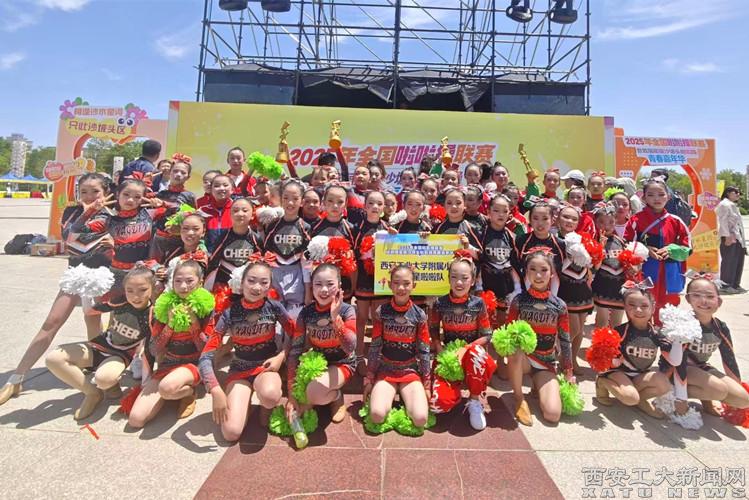 (本网讯)5月30日至6月1日,2025年全国啦啦操联赛暨首届“星耀沙坡头”啦啦操青春嘉年华活动在宁夏中卫市政广场盛大启幕,附小“闪耀星”啦啦操队48 名队员在指导教师李倩、谢乐乐的带领下,与1200多名运动员同场竞技,斩获4项冠军、1项亚军。