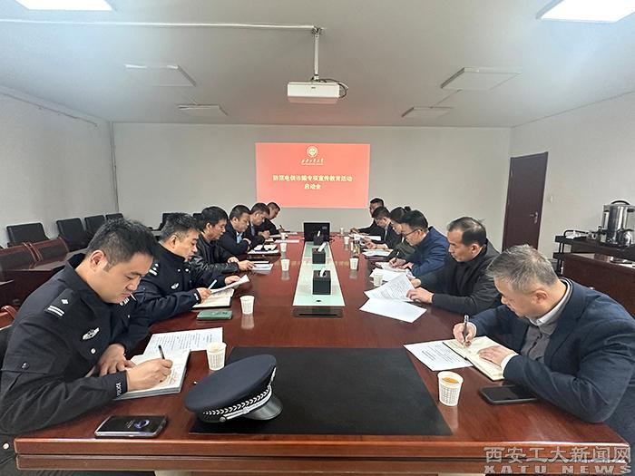 (本网讯)为持续加强学校防范电信诈骗的工作力度,有效预防和杜绝校园电信诈骗案件的发生,4月13日下午,我校召开防范电信诈骗专项宣传教育活动启动会。副校长刘发林出席会议,会议由保卫处处长余俊主持。