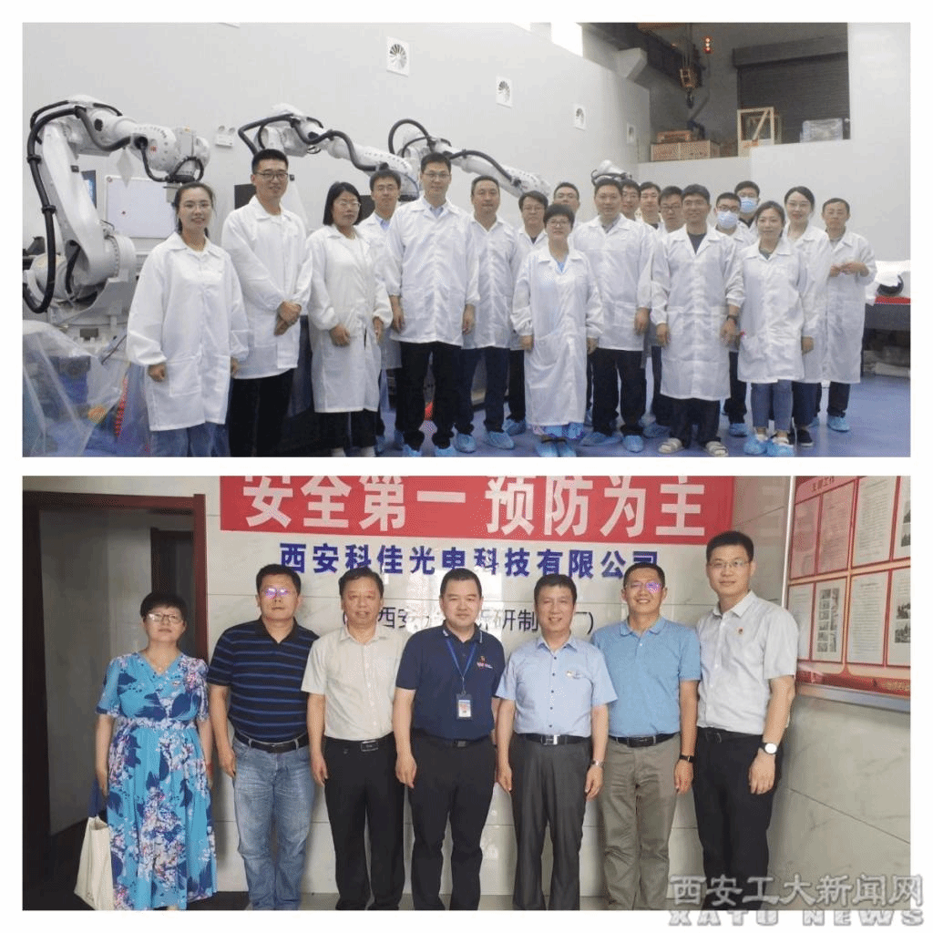 光电工程学院一行还访问了西安科佳光电科技有限公司和飞秒光电科技有限公司。科佳光电是一家致力于航空航天领域的高精密光、机零部件及光机电系统整机研发、生产制造和装配的高科技企业。制造检测能力业内知名,是陕西省光学学会理事单位。安飞总经理、张建副总讲解了科佳光电的各方面情况,深入探讨了党建工作和人才招聘等方面的合作前景。