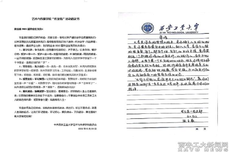 (本网讯)为持续加强学生党员教育,充分发挥学生党员先锋模范作用,在2022届学生党员毕业之际,艺术与传媒学院党委向2022届全体毕业生党员发出倡议发出“传室铭”活动:倡导党员同志遵守纪律,争当表率;寄语新生,勉力前行;感恩室友,牢记师恩;乘风破浪,扬帆逐梦。倡议发出后,全体毕业生党员积极响应,在离校前夕,自觉将宿舍清扫干净并恢复到刚入住的状态,同时向即将入住的新一届学弟学妹留下寄语。