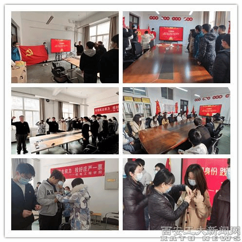 (本网讯)为深入学习宣传贯彻党的二十大精神,巩固拓展党史学习教育成果,充分发挥全体学工干部、学生党员先锋模范作用和学生党支部战斗堡垒作用,12月7日机电工程学院举行“亮身份践承诺树形象”主题实践活动,院党委副书记姚敏茹主持会议,全体学工干部和19级学生党员参加活动,会议分四个会场。