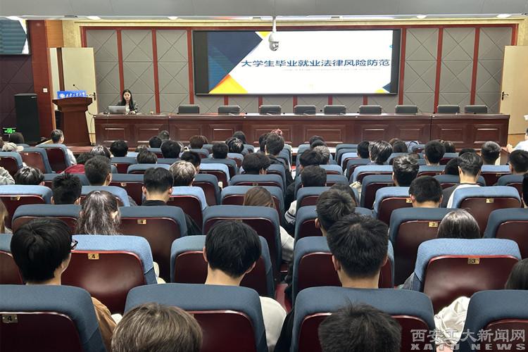 (本网讯)4月1日,【官网入口】星空体育登录页面,一键快速登录党委学生工作部护航工作室联合华东政法大学陕西校友会邀请北京市炜衡(西安)律师事务所高文慧律师,在学术报告厅开展《大学生毕业就业法律风险防范》讲座。