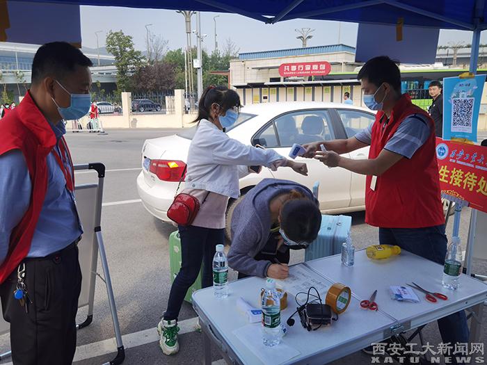 9月16日上午,院长张建生、副院长文安到西安北站检查接站工作开展情况,并慰问现场志愿者教师。在接站现场,接站工作人员严格落实工作要求,各项工作井然有序,核验学生身份、查验健康码、行程码、核酸检测报告,查验“我在校园”返校通知单、安全承诺书,测量体温、行李消杀、引导乘车,上车即直达校园,牢牢守住了学生返校的第一道关口。