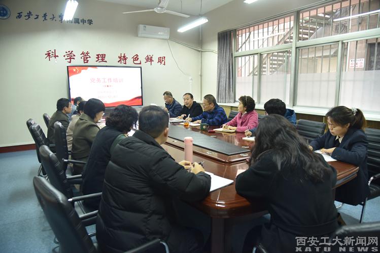 (本网讯)为深入推进党建“双创”工作,不断提升党务工作骨干能力和水平。12月5日下午,附属中学党总支举办了党务工作能力提升培训会。附属中学党总支委员、各支部委员参加了培训会。