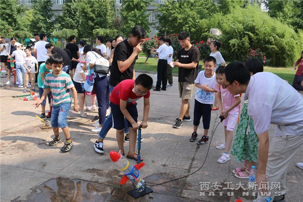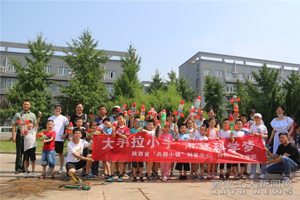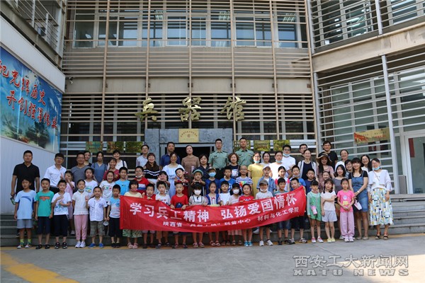 (本网讯)为了充分展现校园文化和兵工精神,提高附小学生的国防意识,7月8日,材化学院开展“大手拉小手,点亮科学梦”系列活动,组织附小学生及家长参观兵器馆,体验水火箭实验。
