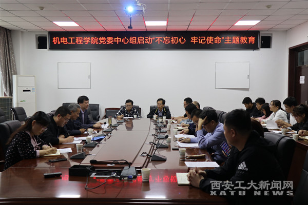 (本网讯)9月18日下午,机电工程学院党委中心组召开“不忘初心、牢记使命”主题教育启动会。校党委委员、副校长刘卜出席,并对学院进一步开展主题教育工作作出指示。学院党委书记路金龙主持会议。