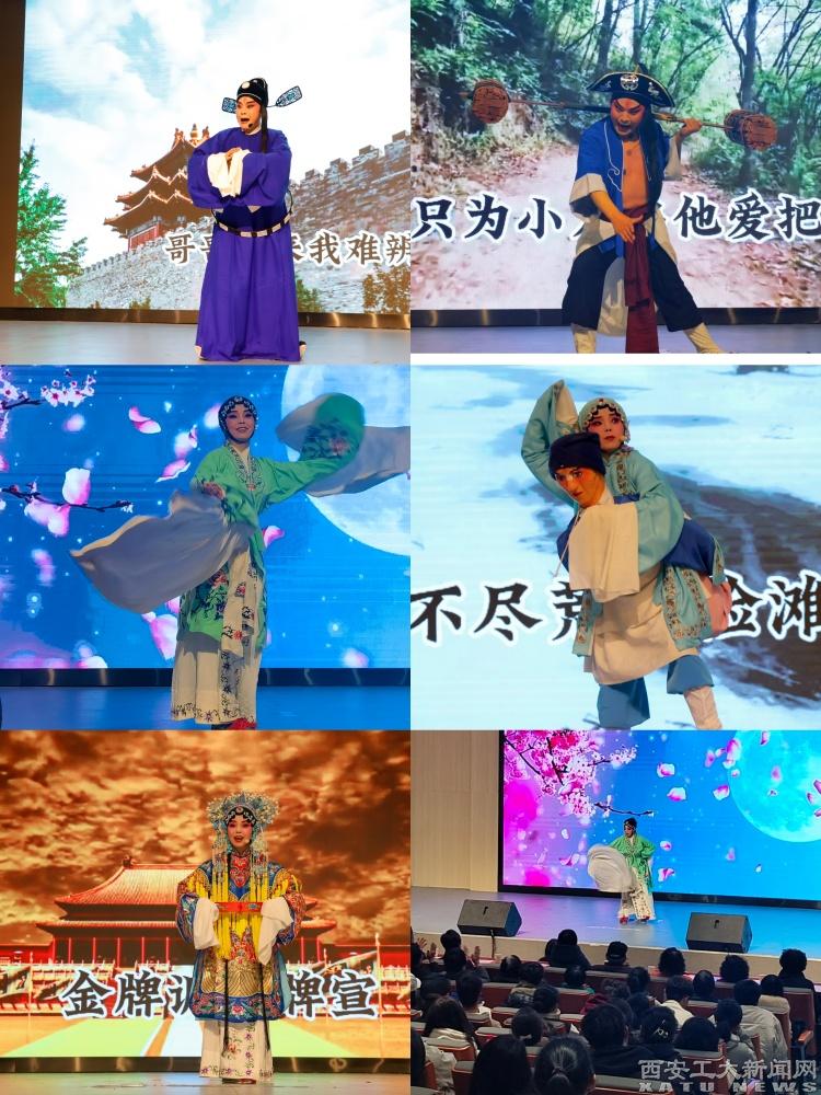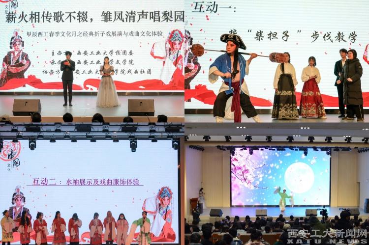 (本网讯)为传承和弘扬戏曲文化,推进中华优秀传统文化与高校美育深度融合,3月10日,由校团委主办、文学院承办的经典折子戏展演与戏曲文化体验活动在双创楼报告厅举行。国家二级演员、陕西省戏曲研究院优秀小生武晓西,国家三级演员刘桃利携弟子苗梦雪等5人与文学院戏曲社罗展硕等4名本科生同台演出,全校400余名师生在悠扬古韵和清歌曼舞中体验了一次传统戏曲与美育教育的双向奔赴。