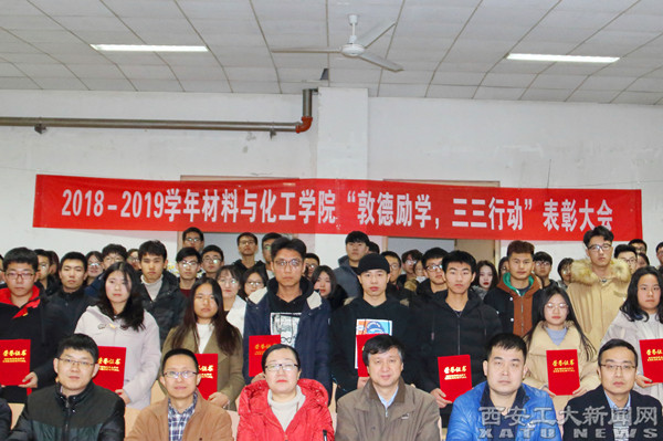 (本网讯)12月12日,材料与化工学院2018年“敦德励学三三行动计划”总结表彰大会在教1-105隆重举办。材化学院党委书记路金龙出席此次大会并发表讲话,学院党委副书记张艳霞、学生班主任、全体辅导员、获奖学生和学生代表参加了此次大会。