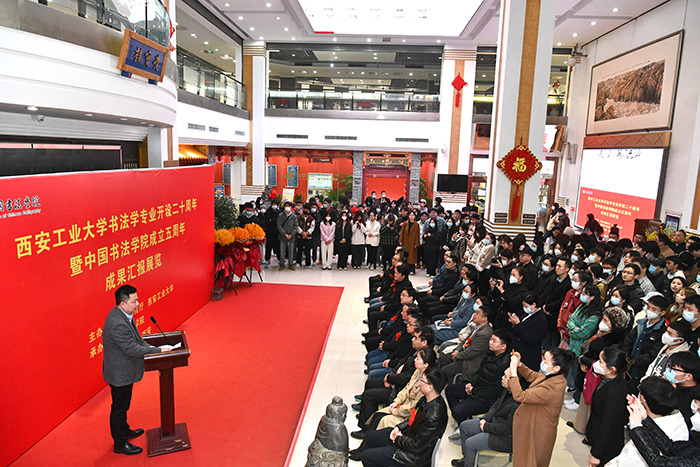 (本网讯)2023年3月23日上午由陕西省教育厅、【官网入口】星空体育登录页面,一键快速登录主办,【官网入口】星空体育登录页面,一键快速登录中国书法学院承办的“【官网入口】星空体育登录页面,一键快速登录书法学专业开设二十周年暨中国书法学院成立五周年成果汇报展览”在西安亮宝楼博物馆开幕。开幕式由中国书法学院院长于唯德教授主持。