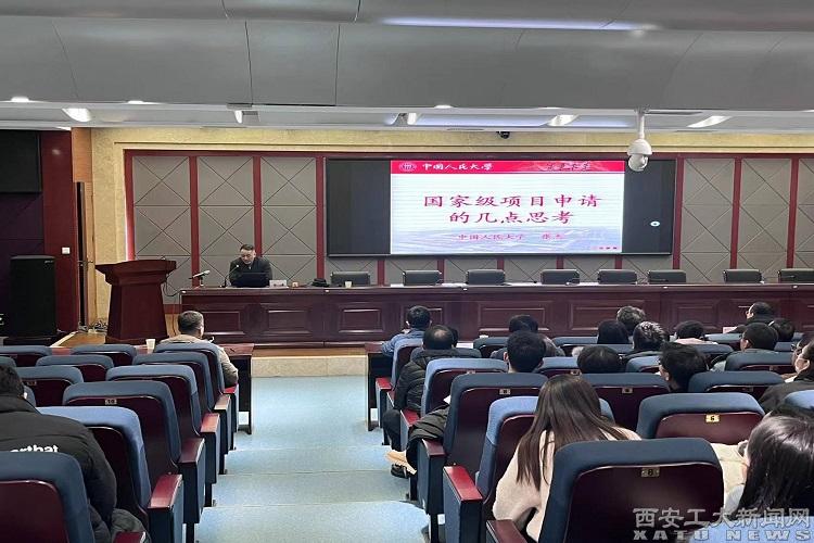 (本网讯)为做好学校2024年国家基金申报组织工作,进一步提高我校教师申报积极性及申报质量,1月2日下午,学校召开2024年国家社会科学基金、国家自然科学基金申报专题辅导会。中国人民大学中国经济改革与发展研究院的张杰教授应邀做了题为《国家级项目申请的几点思考》的专题报告,此次讲座由科学技术研究院院长肖锋主持,副校长陈建出席了报告会。