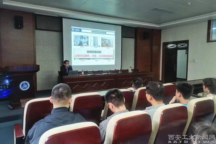 钱凯作了题为“混凝土结构抗连续倒塌性能与机理”的学术讲座,从混凝土结构连续倒塌存在的抗力机制机理不清,非线性动力效应缺乏及抗力提升方法亟待解决等问题切入,提出建筑结构发生连续性倒塌可能带来的灾害。接下来介绍所在团队针对钢筋混凝土框架结构、板柱结构、预制混凝土结构的连续倒塌抗力机制所进行的实验、理论研究及成果应用。