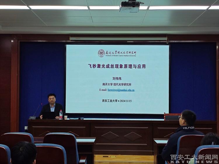 (本网讯)11月15日,光电工程学院邀请教育部特聘教授、国务院学位委员会光学工程学科评议组专家刘伟伟教授,在工6-402报告厅举办了一场题为“飞秒激光成丝现象原理及应用”的学术报告。本次报告由光电工程学院党委书记周顺教授主持,副院长潘永强教授与光电工程学院众多教师及研究生共计约120人共同参加。