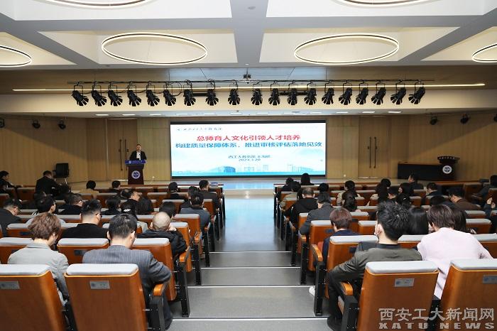 西北工业大学教务部部长王海鹏教授作“总师育人文化引领人才培养,构建质量保障体系,推进审核评估落地见效”主题报告,他从新一轮审核评估“评-建-改”要点、西工大审核评估工作开展过程及审核评估整改工作推进情况三个方面进行了详细介绍,并就新一轮本科教育教学审核评估工作流程优化、自评自建开展、办学特色凝练及问题整改工作给出了指导性的意见和建议,为我校的自评自建工作提供了宝贵的借鉴经验。
