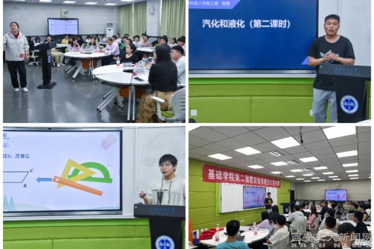 (本网讯)为切实提升大学生教育教学能力,助力大学生就业竞争力提升工作,基础学院举办第二届大学生教育教学能力大赛,共有200余名大学生积极参与。经过初赛、复赛的选拔,最终有11名参赛选手进入决赛。4月19日下午,本届大学生教育教学能力大赛最为精彩的决赛环节在大家的期待中顺利进行,西安学而思耿洁、王飞、崔丹、姚玲4位老师担任决赛的评委老师。