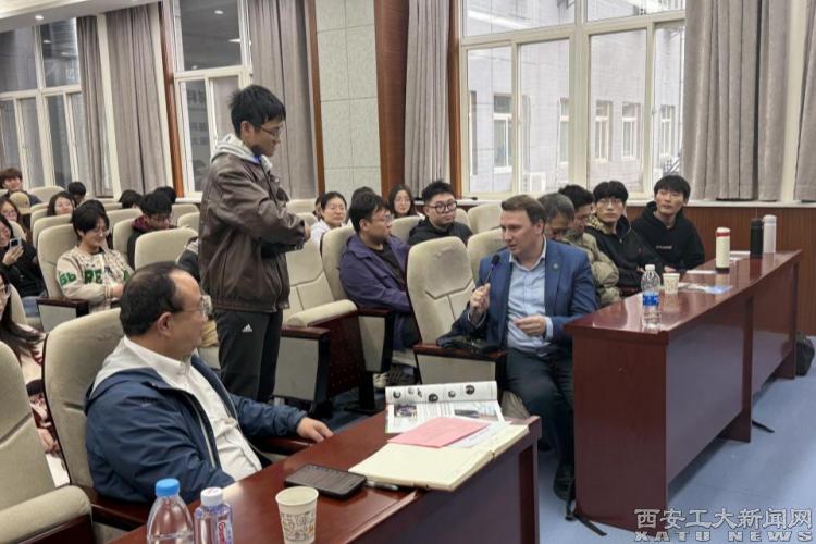 Pavel KovalevValyevich副教授在报告中系统介绍了俄罗斯圣彼得堡彼得大帝理工大学机械工程、材料与运输学院近年来的科研进展及国际科技合作动态,重点阐述了学院在先进材料研发、先进材料成形技术、结构设计、特种加工及计算模拟领域的显著成就,同时对新能源材料在交通运输工具中的应用研究进行了深入解读。他明确表示,愿以两校合作办学为契机,进一步深化双方科研协作,并推进研究生联合培养工作。在现场互动环节,同学们踊跃提问,围绕金属材料具体研究方向等问题与Pavel Kovalev Valyevich副教授展开深入交流,现场氛围热烈活跃。
