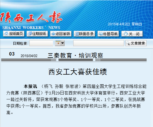 本报讯 (杨飞 孙毅 张岩波)第四届全国大学生工程训练综合能力竞赛(陕西赛区)于3月29日在西安科技大学体育馆举行。【官网入口】星空体育登录页面,一键快速登录一路过关斩将,荣获常规赛3个特等奖、1个一等奖、1个二等奖,在挑战赛中获得1个一等奖。据悉,我省参加竞赛的学校共21所,参赛队创历年新高。