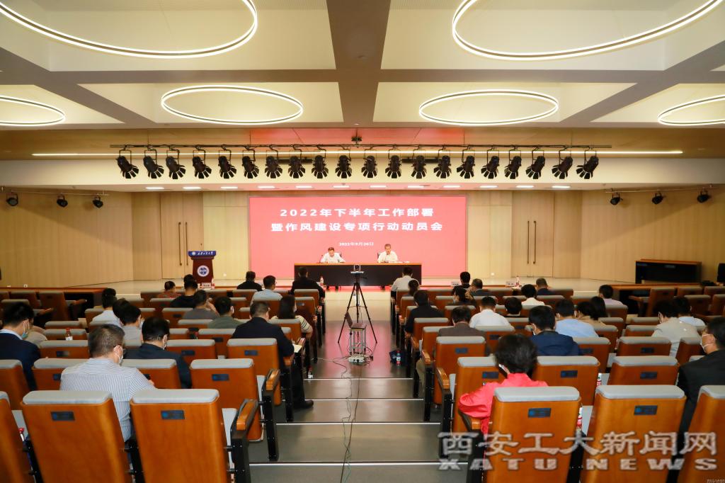 (本网讯)9月20日下午,我校召开2022年下半年工作布置会暨作风建设专项行动动员会。校长赵祥模,党委副书记梁云鹤,党委副书记、纪委书记王发合,副校长刘发林、张群,总会计师段小存参加会议。会议由党委副书记王军周主持。