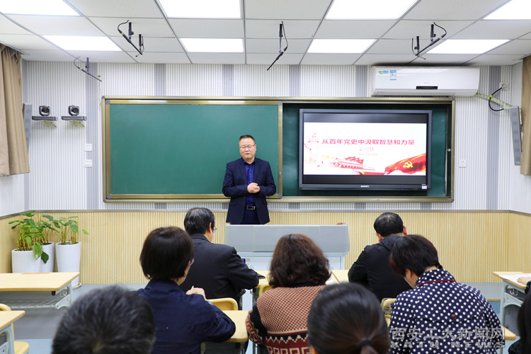 (本网讯)4月21日下午,附属中学党总支开展党史学习教育主题党日活动。特邀请组织部常务副部长梁闪慧作题为《从百年党史中汲取智慧和力量》专题党课。附中党总支书记胡诚忠主持。