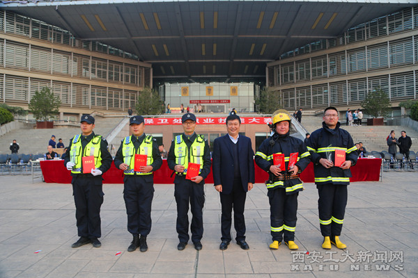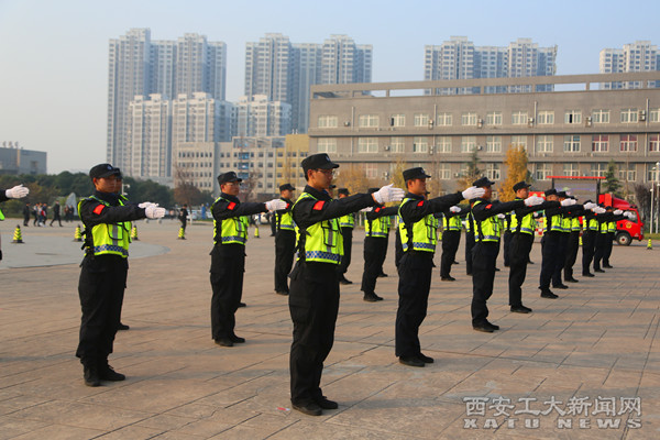 (本网讯)11月22日,由工会、学生工作部、保卫处共同承办的以“技能比赛展风采,比学赶超增素质”为主题的保卫处职工技能大赛在未央校区经纬广场举行。校党委副书记吴介军、副校长刘发林,宣传部、工会、学生工作部、团委、总务处、财务处、国资处、经管学院的主要领导,西安市消防救援支队未央区大队队长冯立奇,长安大学、西北大学、陕西科技大学、西安石油大学、西安工程大学、西安财经大学、陕西警官职业学院等兄弟高校保卫处领导出席了本次大赛。